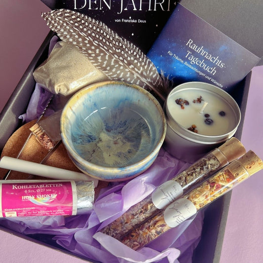 Großes Rauhnächte Ritual Set | Räucherwerk Rauhnacht Räuchermischung mit Duftkerze, Zubehör und Anleitung