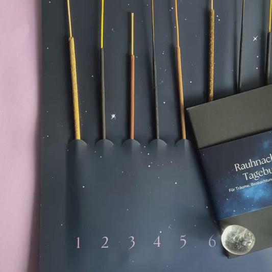 Rauhnächte Räucherstäbchen Geschenk-Set | 12 Räucher-Stäbchen | Rauhnachts-Tagebuch | Bergkristall Armband Geschenkverpackung