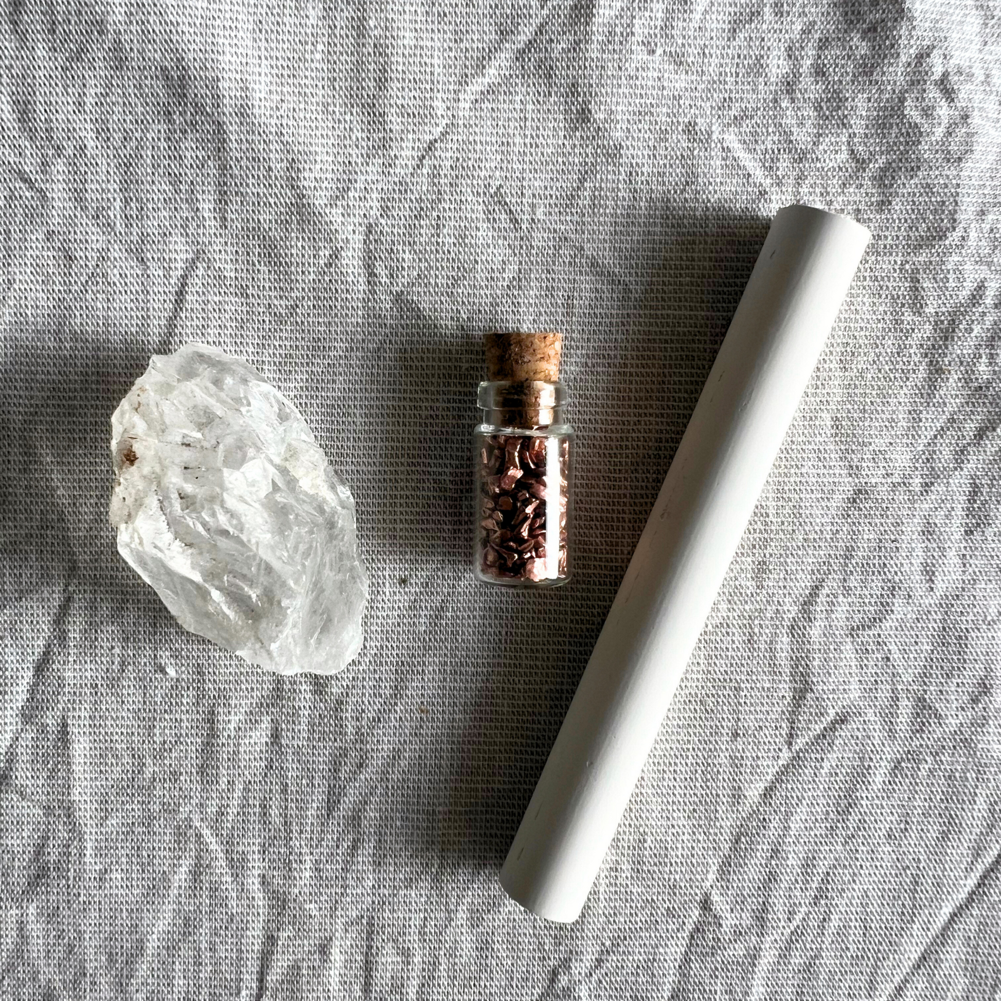 Kreide, Kupfer, Bergkristall: Diese Elemente werden traditionell für spirituelle Zwecke verwendet und können in Ritualen und Meditationen eine energetische Unterstützung bieten.